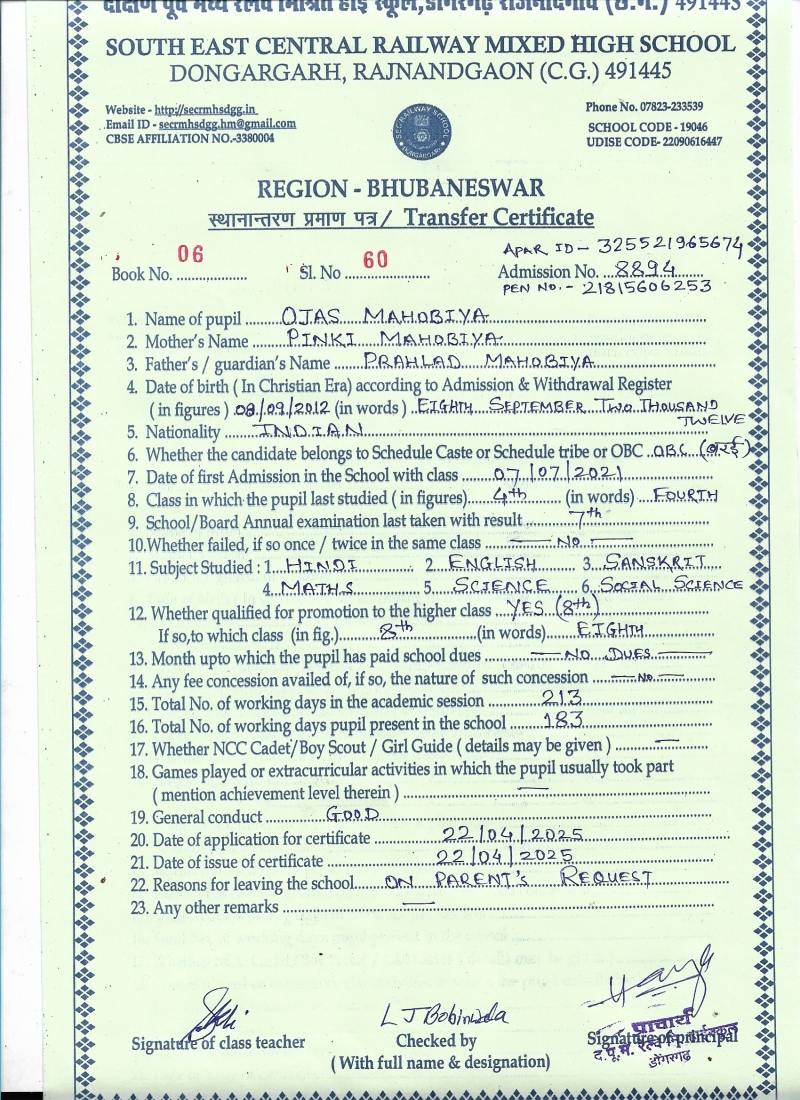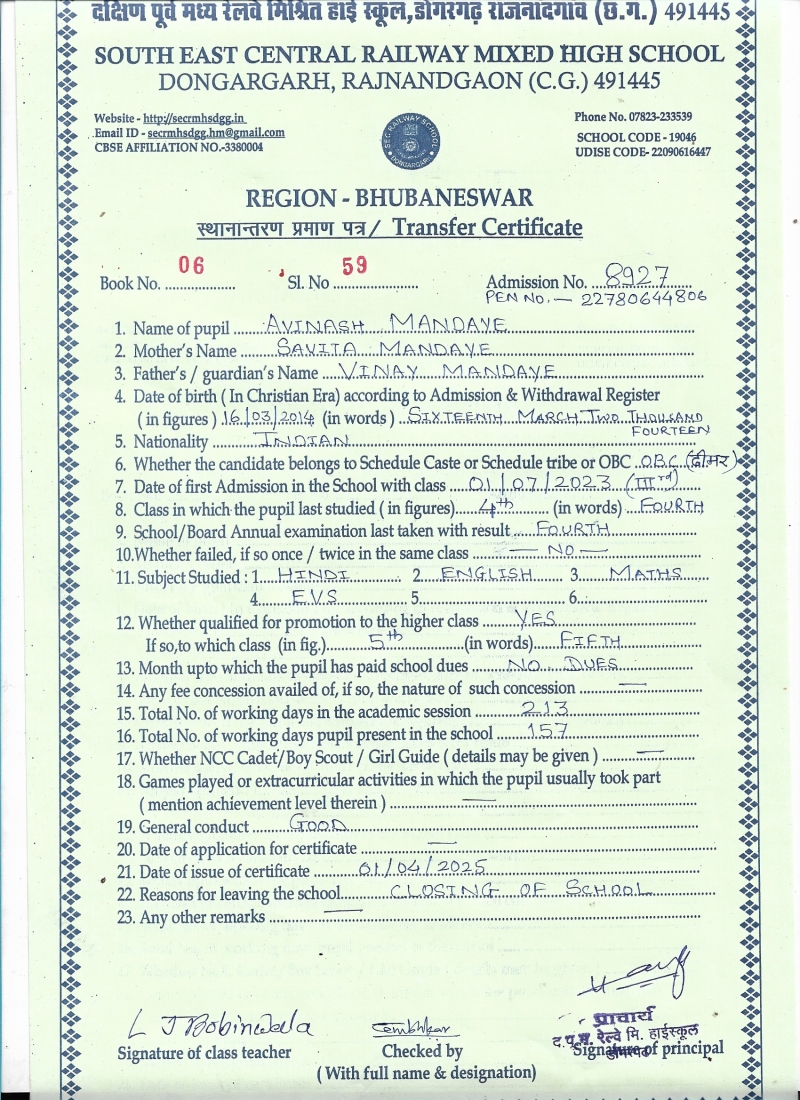 SOUTH EAST CENTRAL RAILWAY MIXED HIGH SCHOOL DONGARGARH, CHATTISGARH